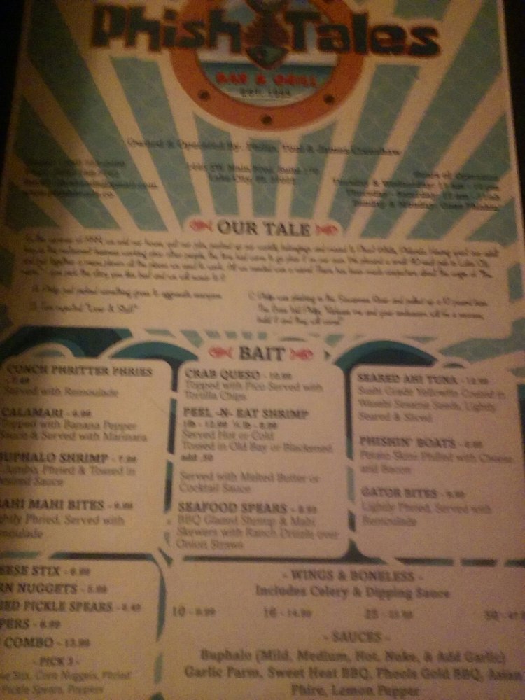 Phish Tales is a seafood bar located at 1445 SW Main Blvd Ste 170, Lake City, FL. They offer a wide range of amenities such as takeout, delivery, wheelchair accessibility, and more. This restaurant is known for its mouth-watering bait options like wings, boneless wings, peel and eat shrimp, and baked crab dip. The menu also features delicious sandwiches like the Philly cheesesteak and burgers, as well as salads with various protein choices. Customers praise the freshness and tenderness of the fish, along with the friendly service and cozy atmosphere. With a vibrant ambiance and exceptional fusion of flavors, Phish Tales is a local gem that promises a unique and satisfying dining experience. Whether you're a local or passing through, this restaurant is definitely worth a visit.